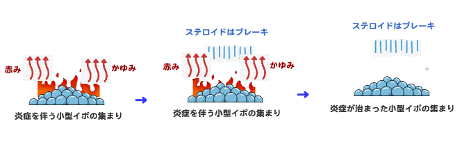 ●ステロイドのリスク: 自然治癒のための反応を無理に抑えてしまうため、一時的に痒みは軽快しますが、根本治療にはなりません。
